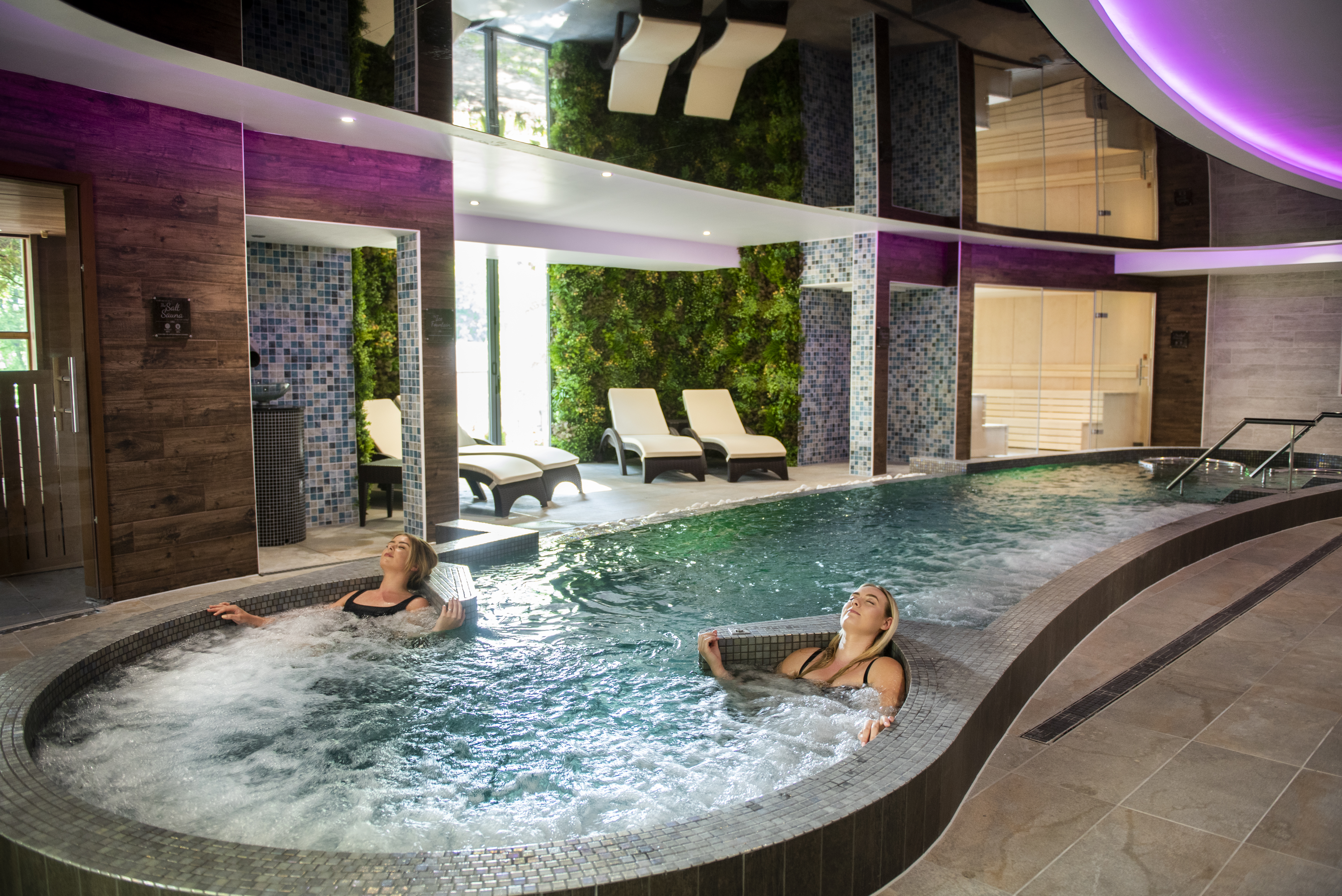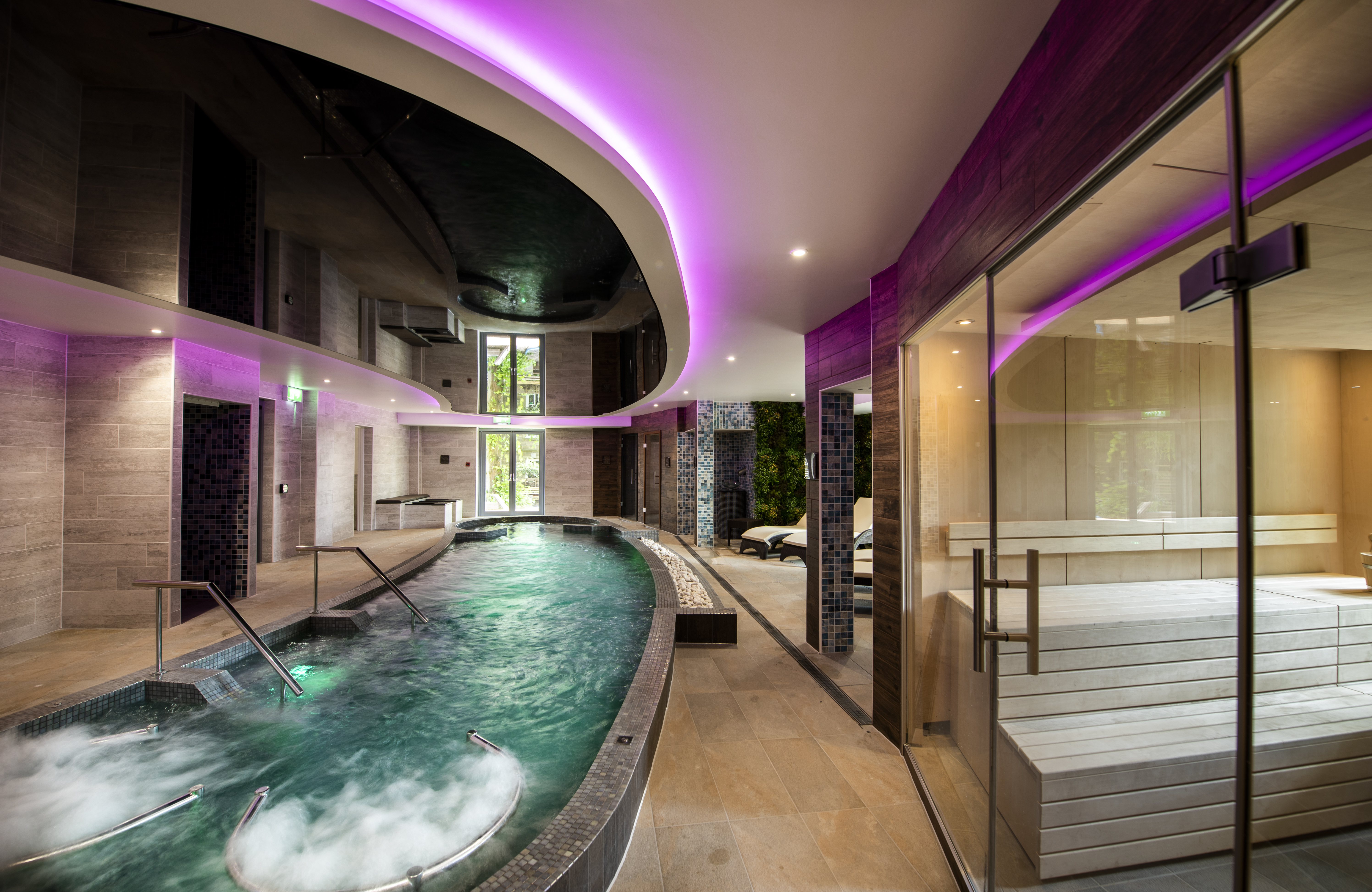 Our luxurious Vitality pool is heated to optimum temperature for complete spa comfort. Relax with friends in the whirlpool element, gaze into the woodland gardens over the infinity edge or simply float your cares away.