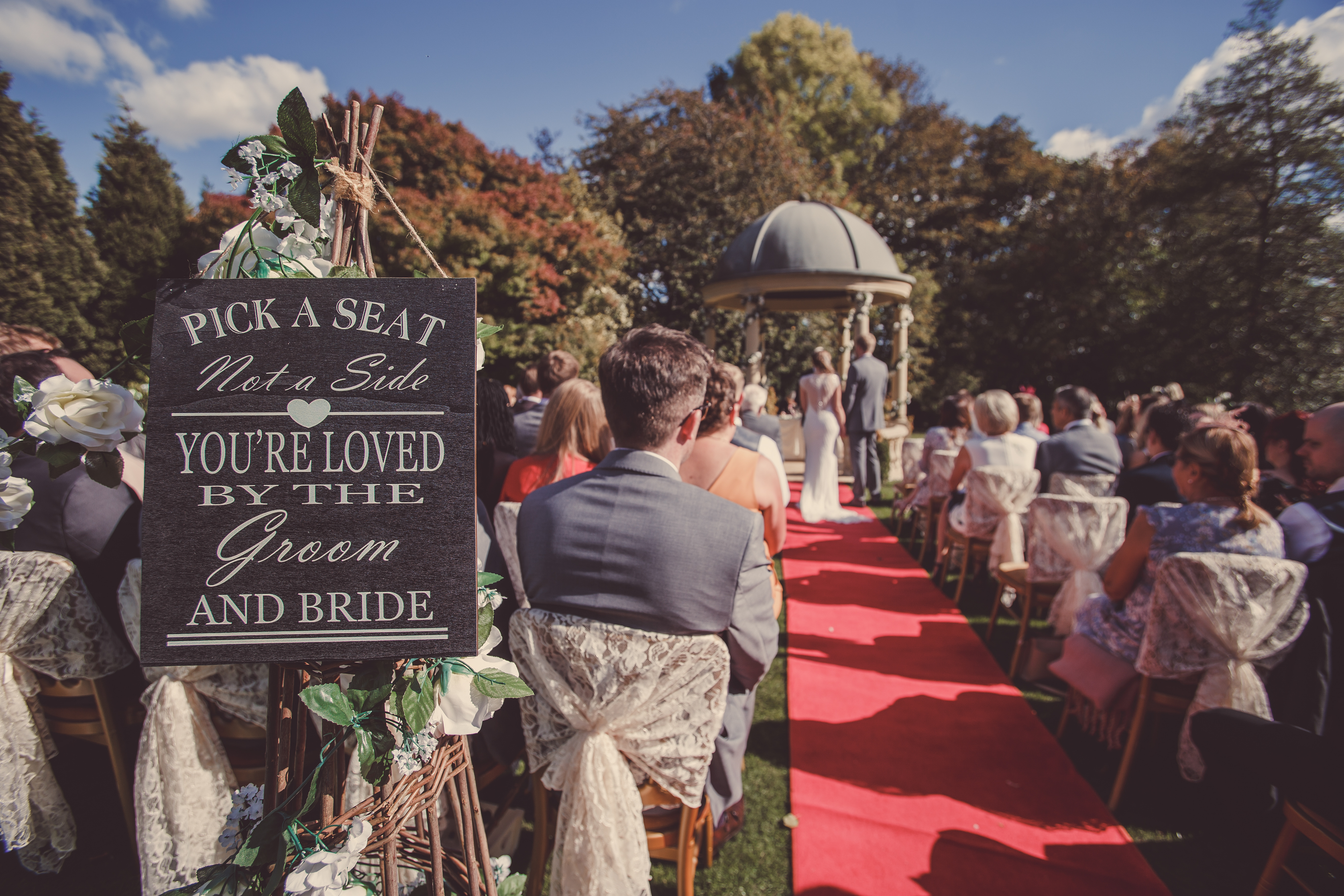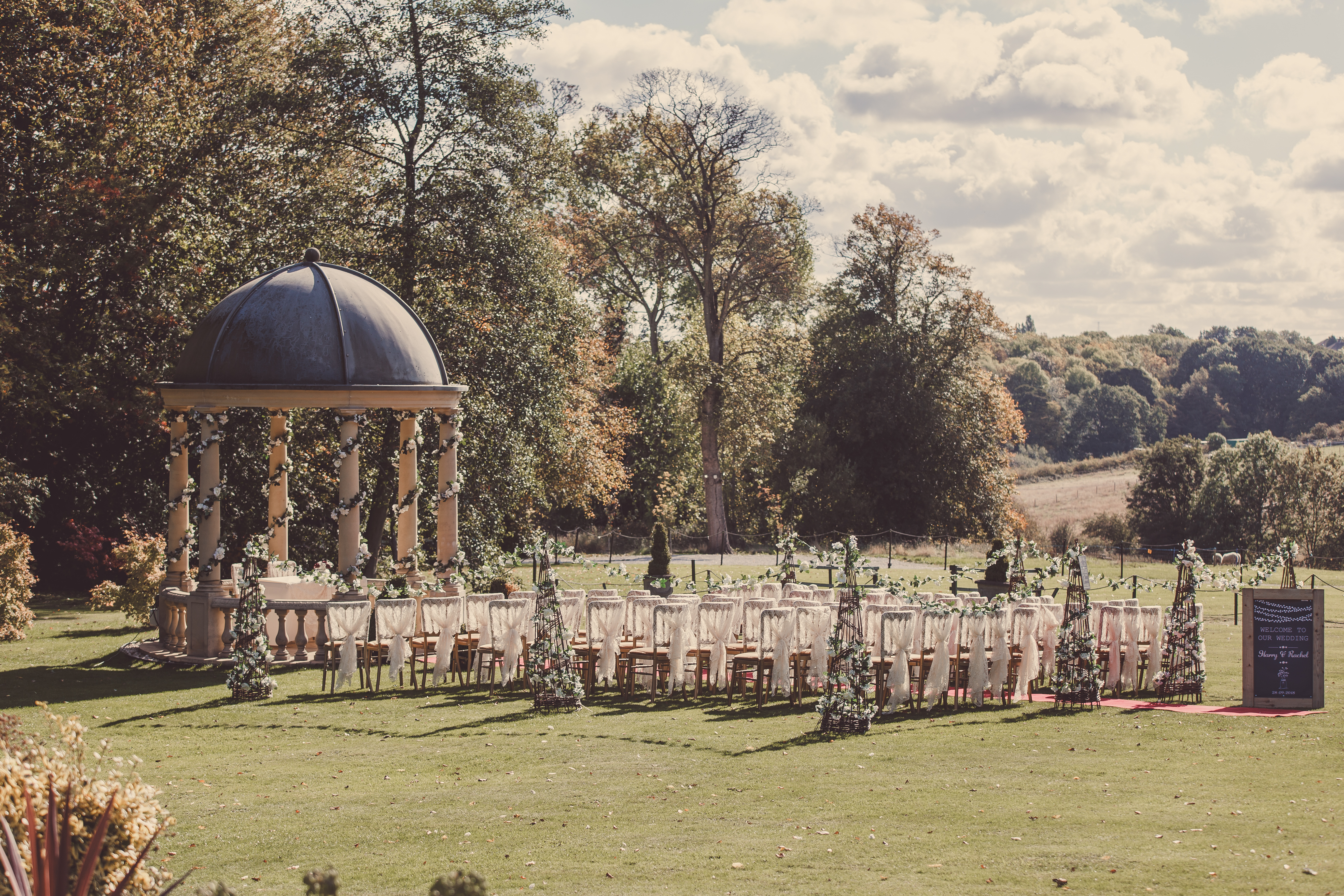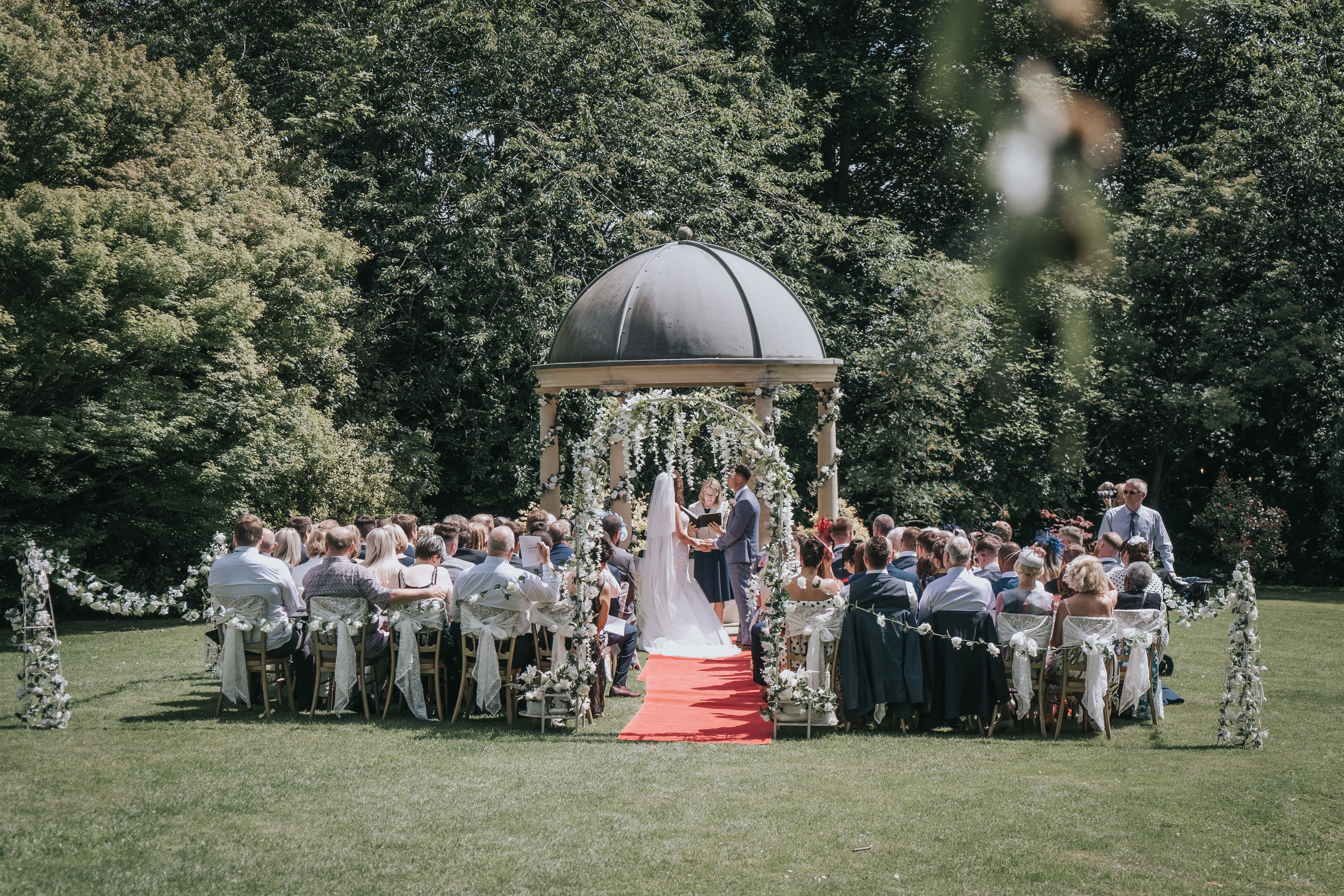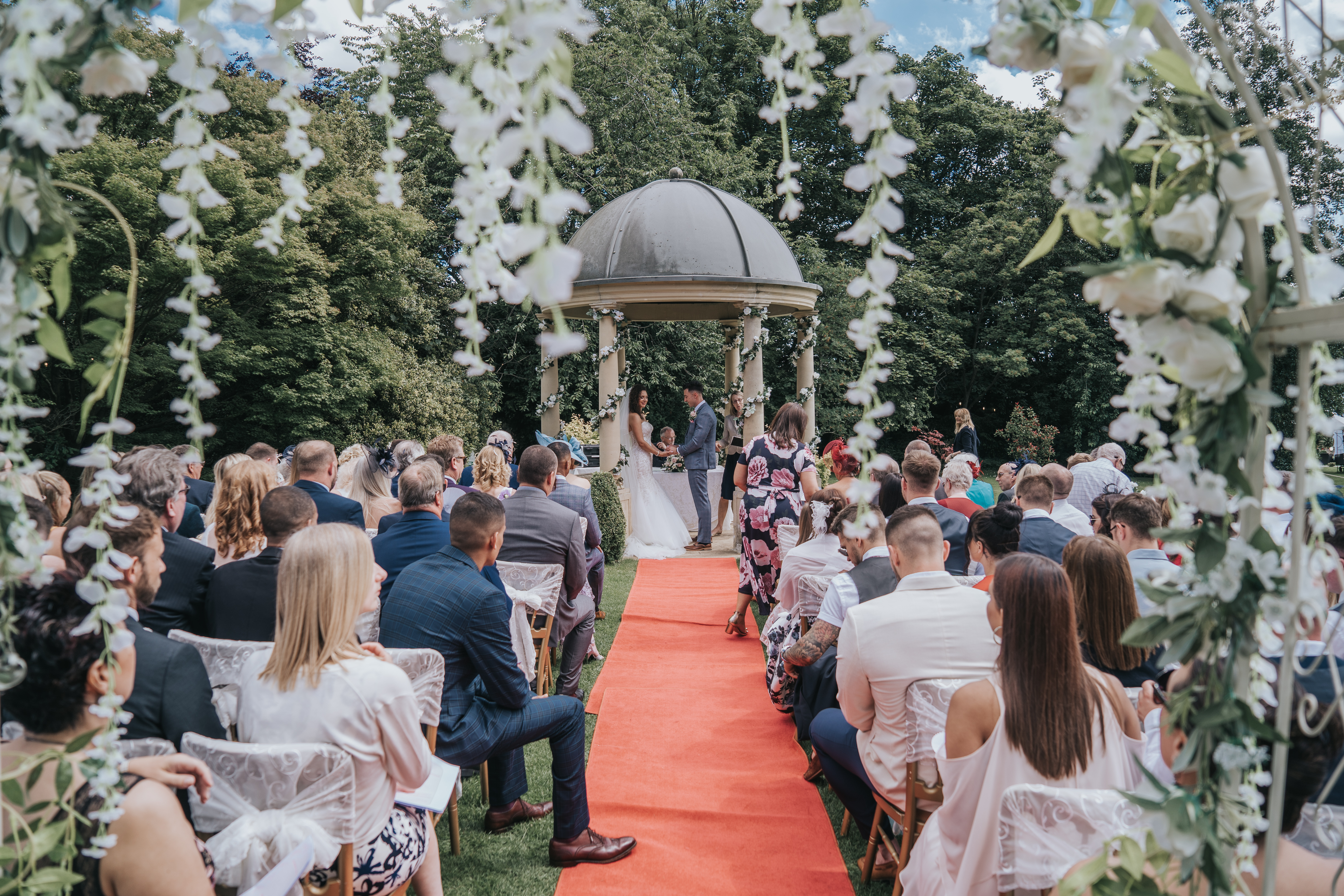 The Garden Pavilion presents rolling hills to one side and our stunning 19th century manor house to the other. The beautiful domed pavilion is the perfect centrepiece to exchange your vows with a luxurious red carpet providing the aisle.